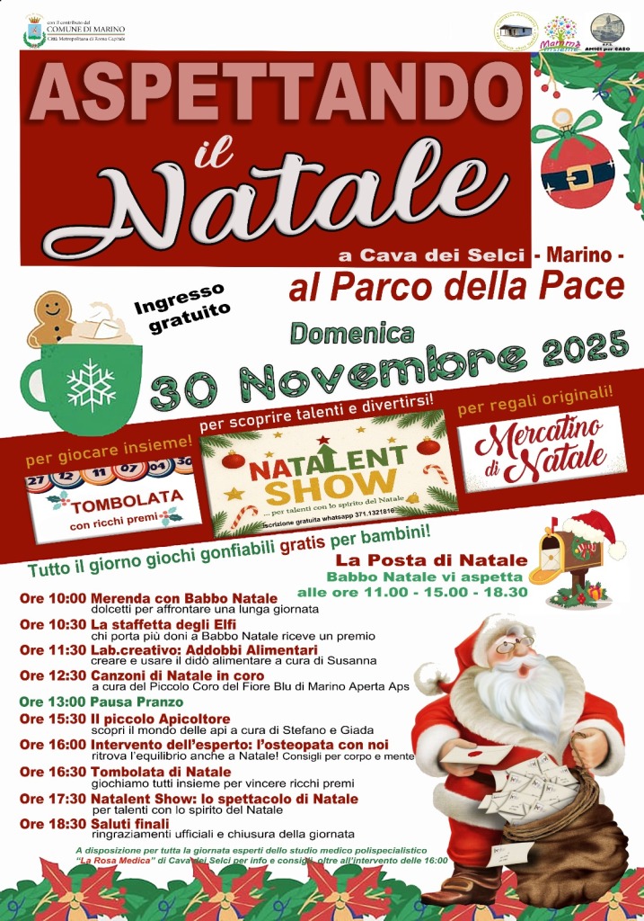 Il programma prevede, inoltre, altre attività come: l’arrivo di Babbo Natale, animazione, giochi gonfiabili gratuiti, la Tombolata, il Natalent Show dedicato ai giovani talenti, laboratori creativi, interventi formativi e un Mercatino di Natale con idee regalo artigianali.