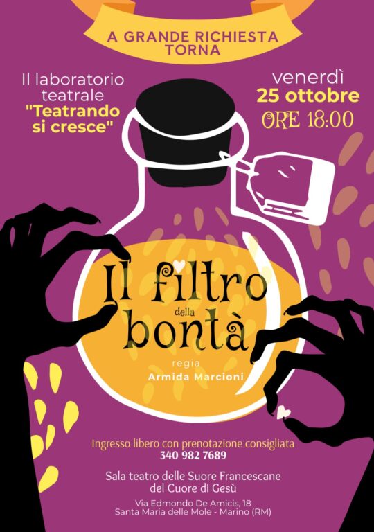 Tutto pronto per la rappresentazione teatrale legata al Laboratorio ‘Teatrando si cresce’ diretto da Armida Marcioni per il 22 maggio. I giovani attori preparati dalla regista Marcioni si esibiranno nello spettacolo ‘Il Filtro della Bontà’ con la partecipazione del Piccolo Coro del Fiore Blu di Marino Aperta APS. Lo spettacolo si terrà presso il Teatro …